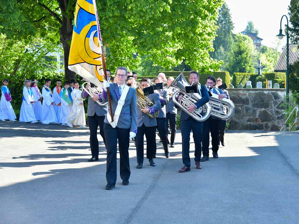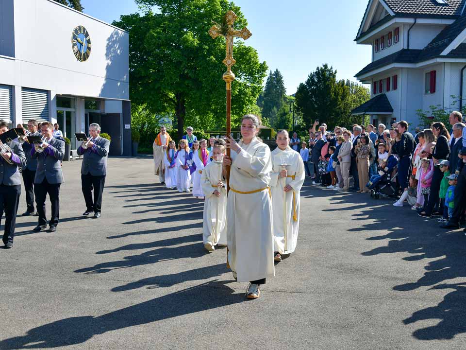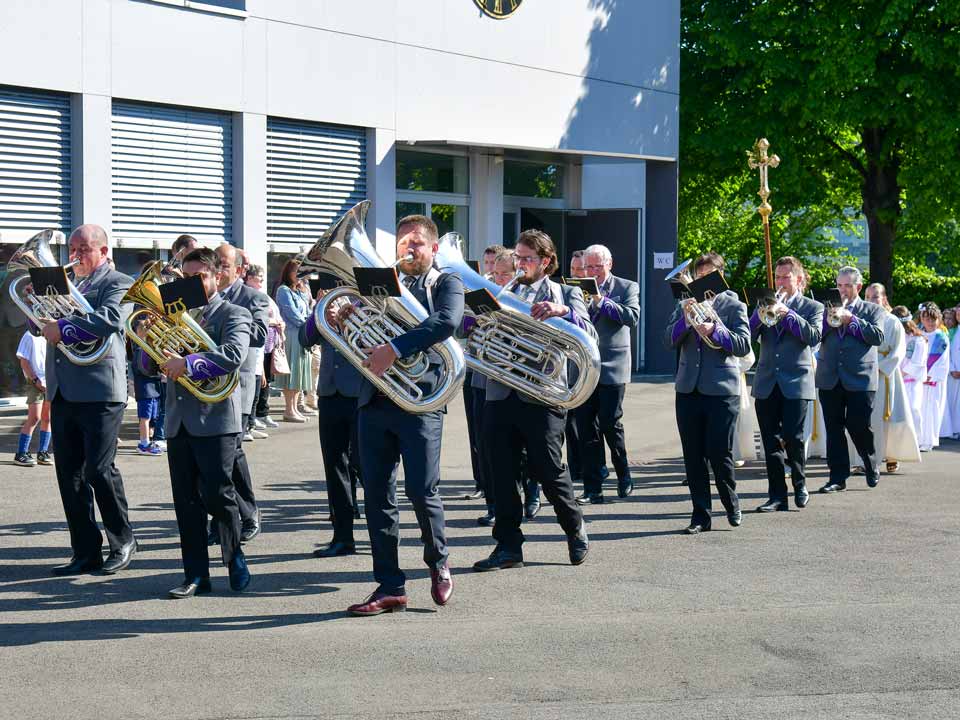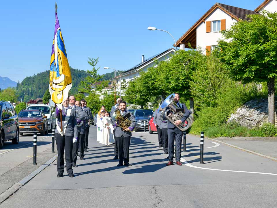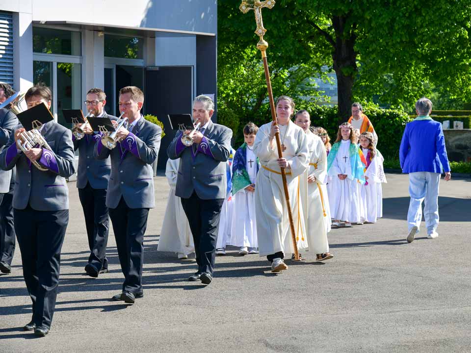 Heute am 11. April durften wir die Erstkommunikantinnen und Erstkommunikanten von Udligenswil mit einem Prozessionsmarsch in die Kirche begleiten. Eine grosse Anzahl Kirchgänger standen Spalier vor der Kirche. Nach dem Gottesdienst spielten wir für die Erstkommunikanten und ihren Angehörigen ein abwechslungsreiches Ständchen. Fotos: Foto Evers, Adligenswil